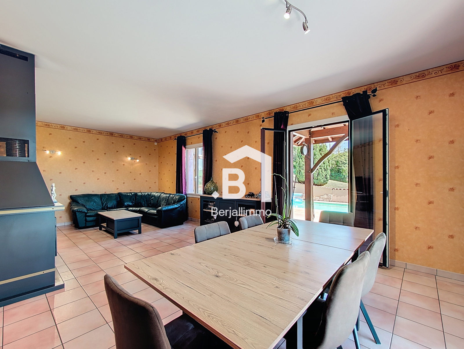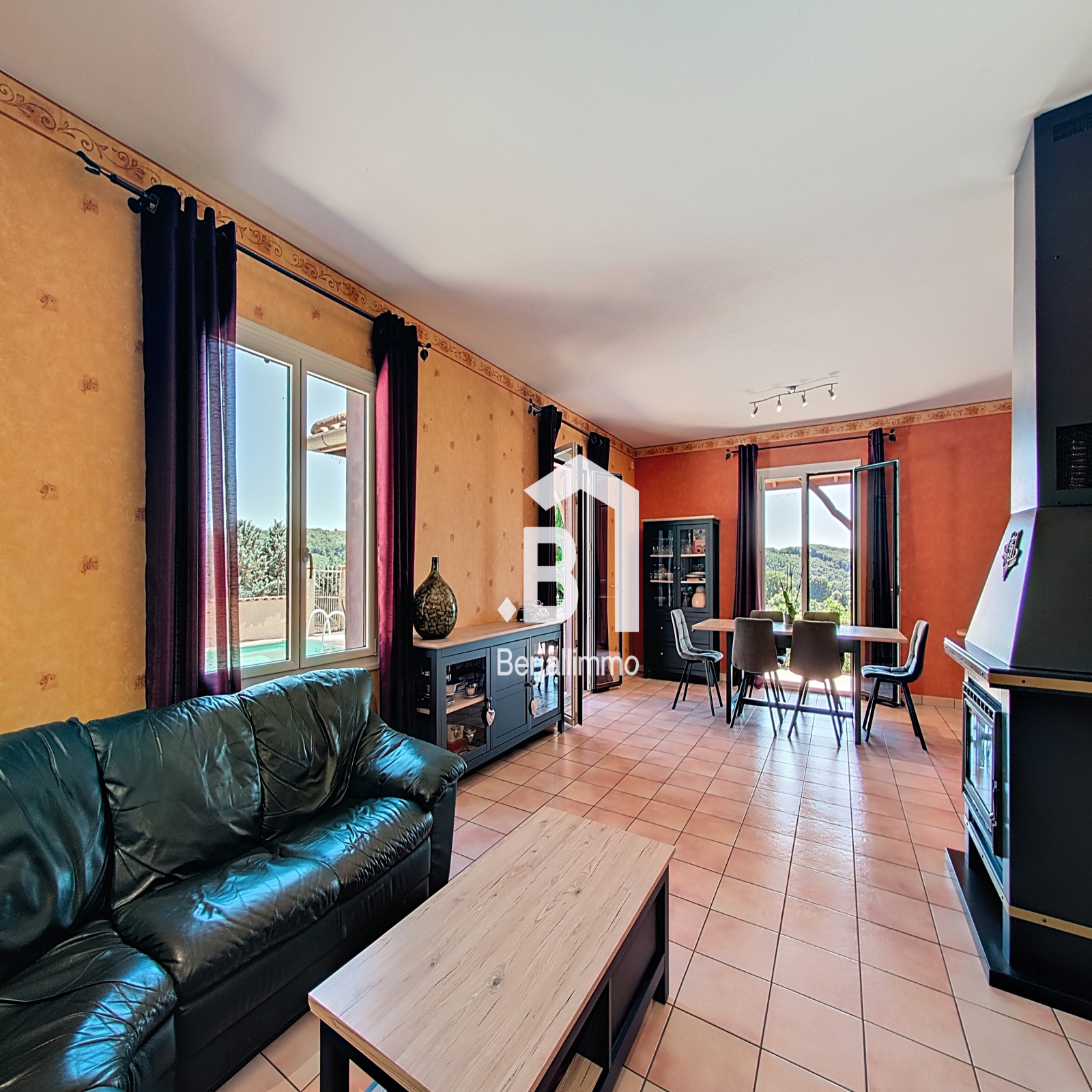 - Salon/séjour lumineux avec cheminée à foyer fermé