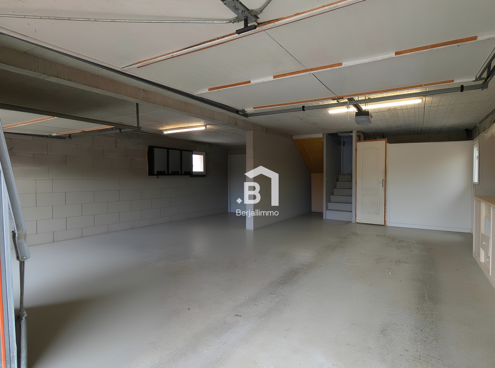 Construite sur vide sanitaire elle offre un double garage de 60m² avec porte sectionnelle automatique .