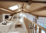 Le séjour cathédral de plus de 50 m², impressionnant par sa hauteur sous plafond et sa luminosité (exposition sud/sud-est), s’impose comme une pièce de vie d’exception. L’insert en bois massif, réalisé sur mesure, ajoute chaleur et caractère.