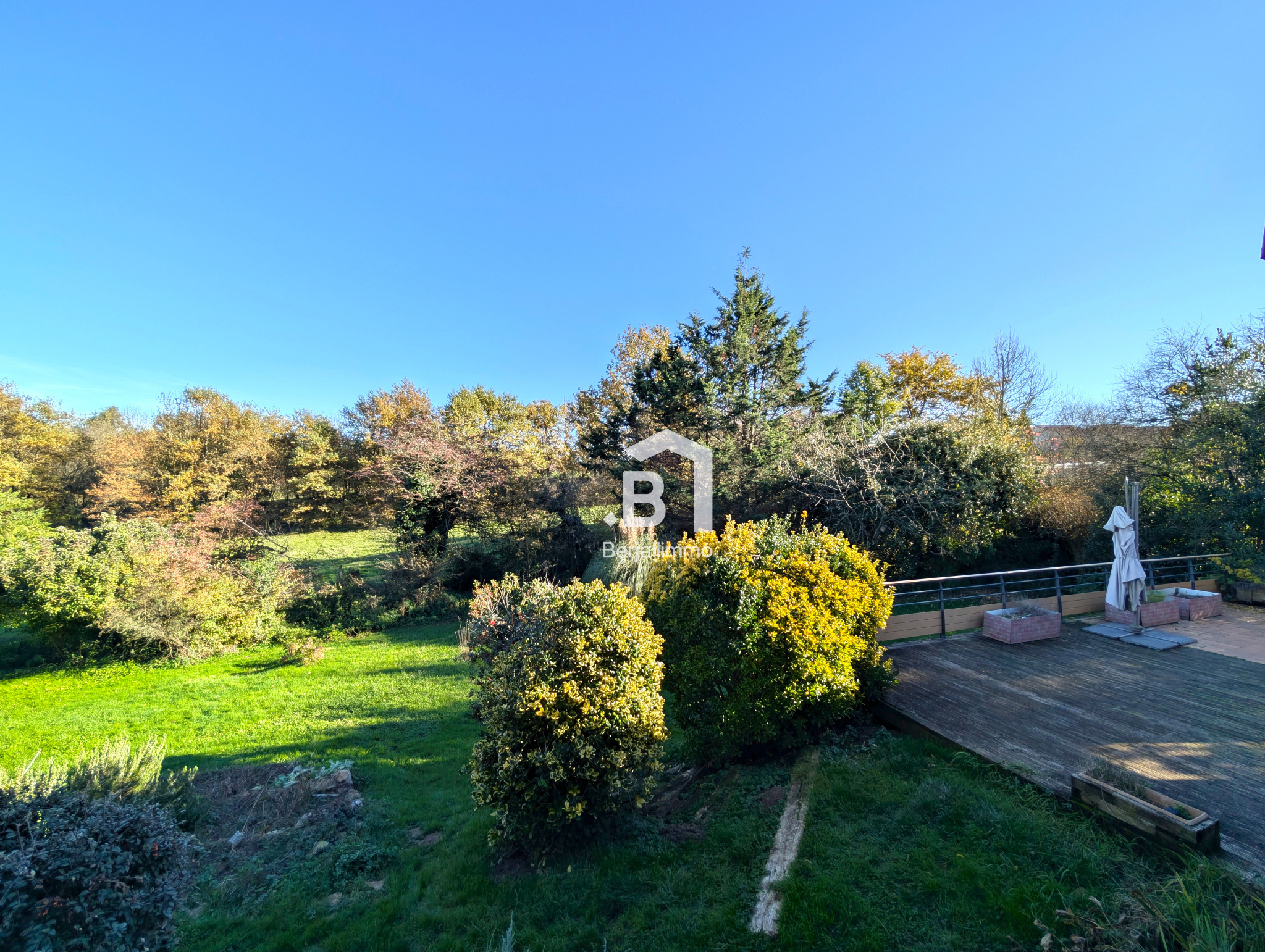 Entourée de terres agricoles et de bois classés, la maison bénéficie d’un calme absolu, d’une intimité totale et d’un cadre verdoyant unique.