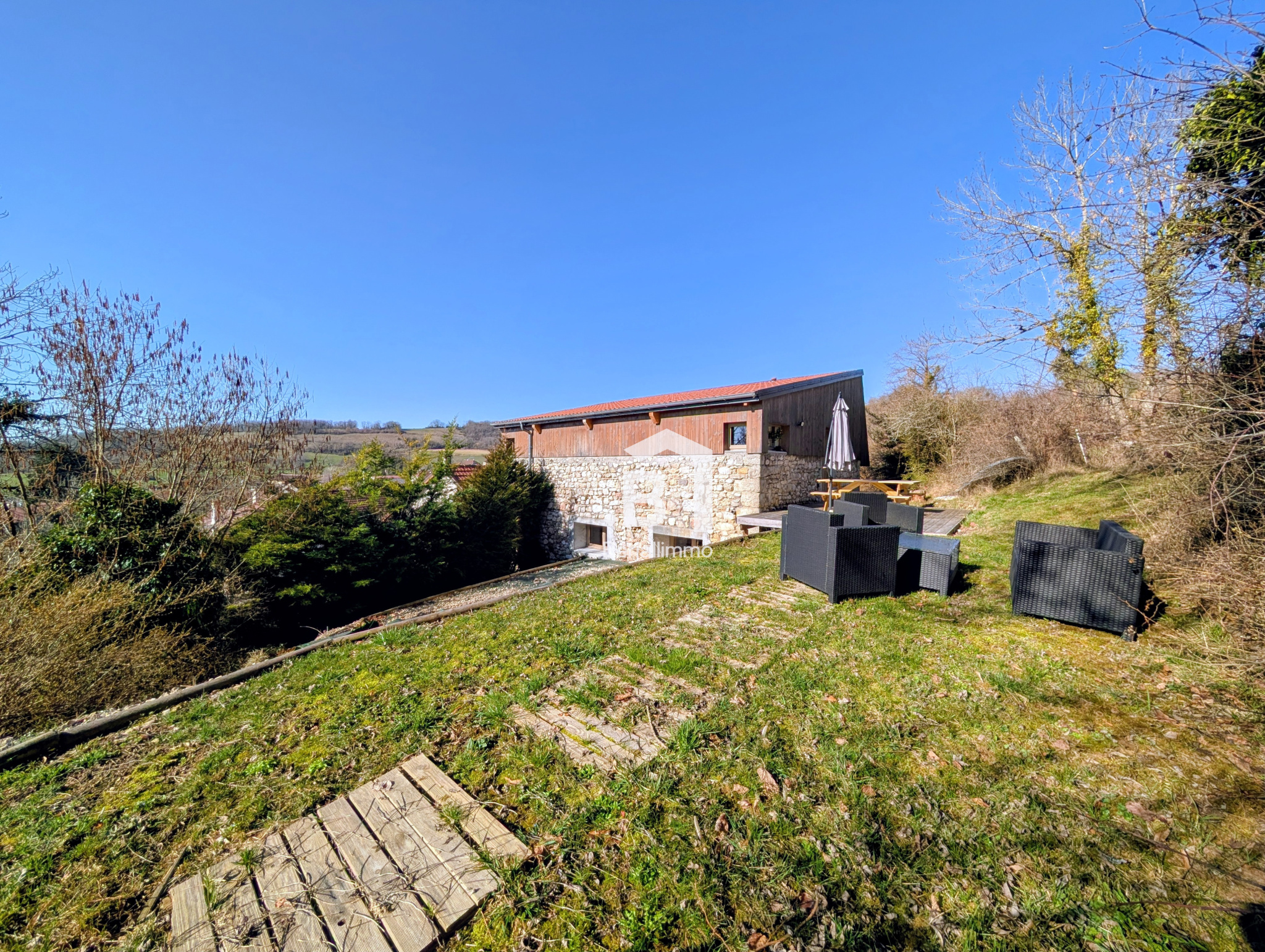 CHALET DE CHARME EN PIERRE + MAISON – GÎTE RENTABLE (11 %) – ESPACE DÉTENTE SAUNA & JACUZZI – MONT DU BUGEY